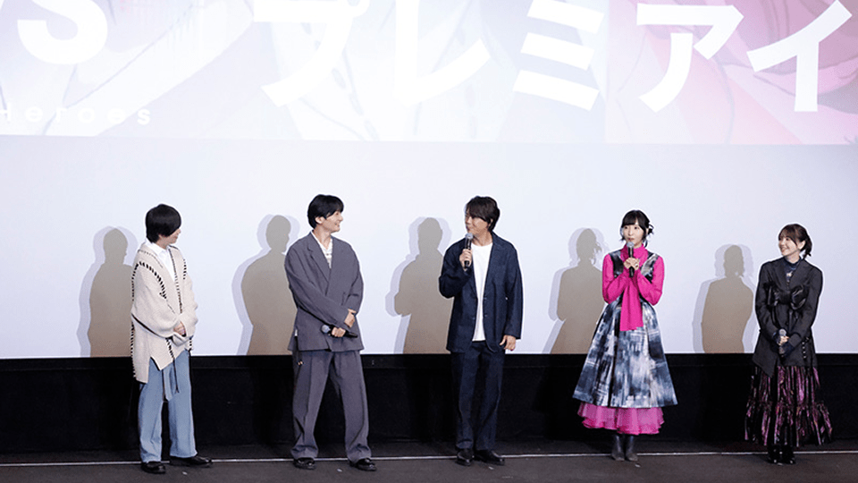 贅沢な生歌唱で温まった会場に姿を現したのは、YOSUKE 役・浪川大輔さん、セイレーン役・佐倉綾音さん、 μ(ミュー)役・鬼頭明里さん、ソウジ役・島﨑信長さん、JUNE(ジューン)役・斉藤壮馬さんの5名です。